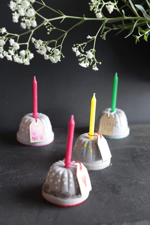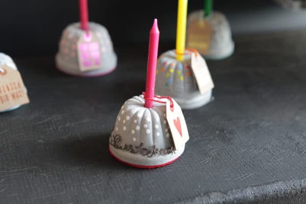 Ein kleiner Geburtstagskuchen für Ihre Lieben! Zauberhafte Tischdeko oder Mitbringsel. So liebevoll und persönlich, wie der Geburtstagskuchen sein muss – nur ganz ohne Kalorien. Mit Drahtschrift auf Terrazzo-Stein und Kerze.