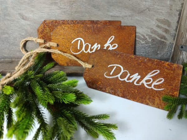 Rostige Spruchtafel / Anhänger, DANKE