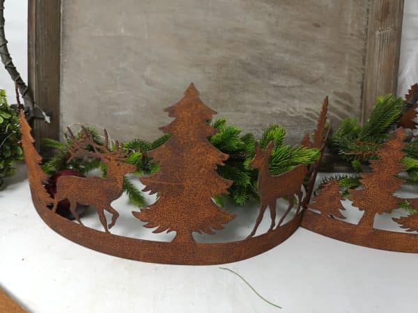 Winterlicher Dekoring Metall / Tannen, Rehe / Edelrost B50