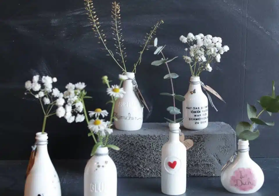 Solltet Ihr das eine oder andere hübsche Wiesenblümchen pflücken, dekoriert es doch ori-ginell in unseren Mini-Väschen.